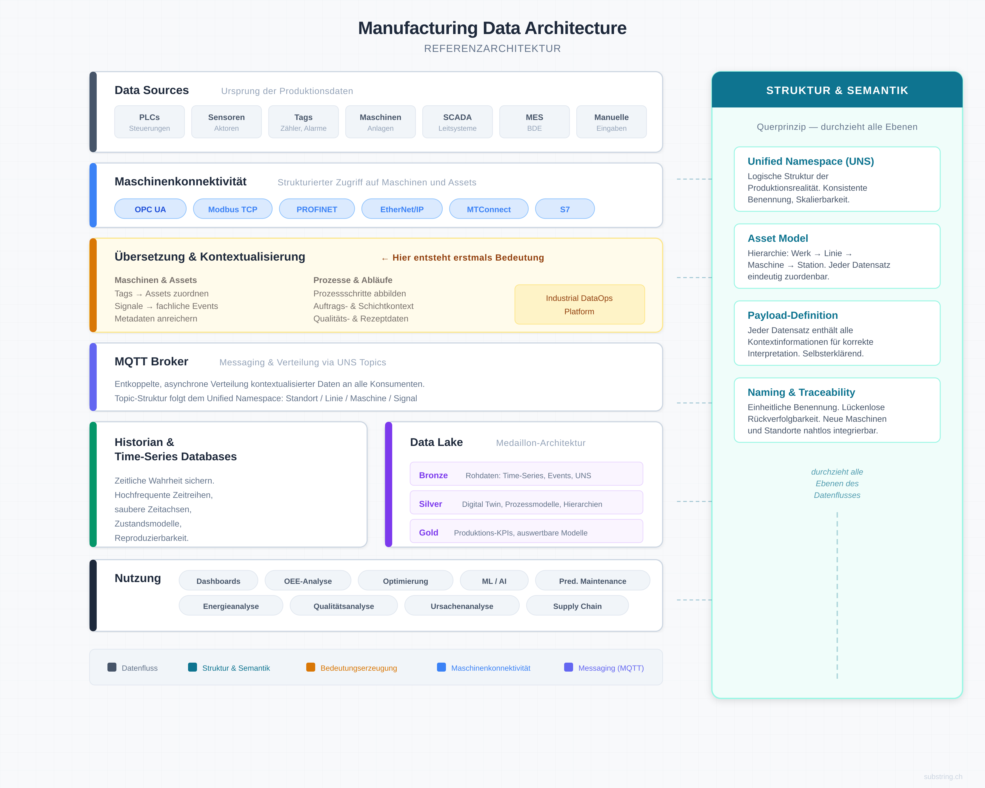 Bei Substring ist diese Referenzarchitektur kein theoretisches Modell. Sie ist unser Standardvorgehen für industrielle Datenarchitekturen.